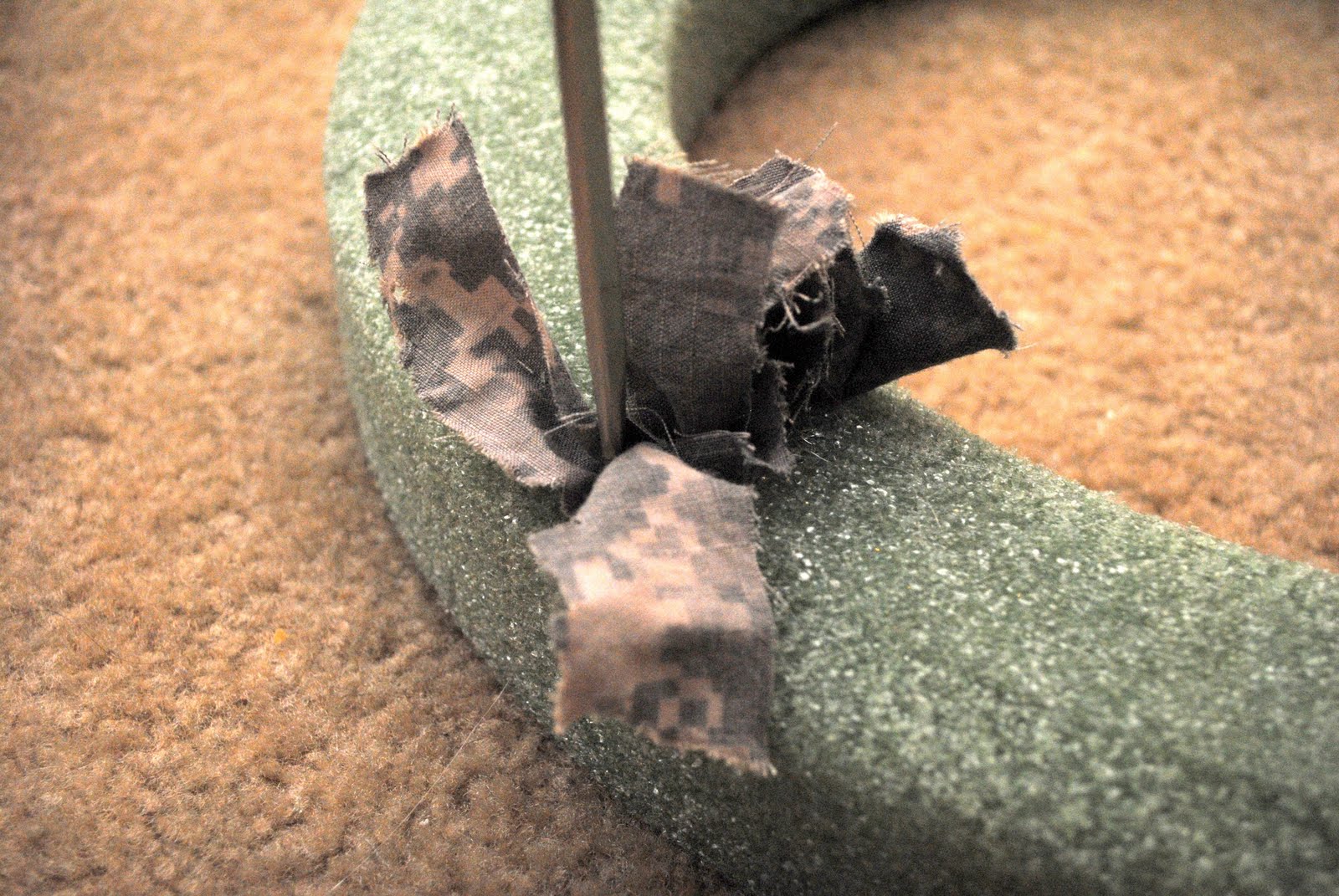 First I cut out a small rectangle out of my dark green fabric. I then turned it inside out and